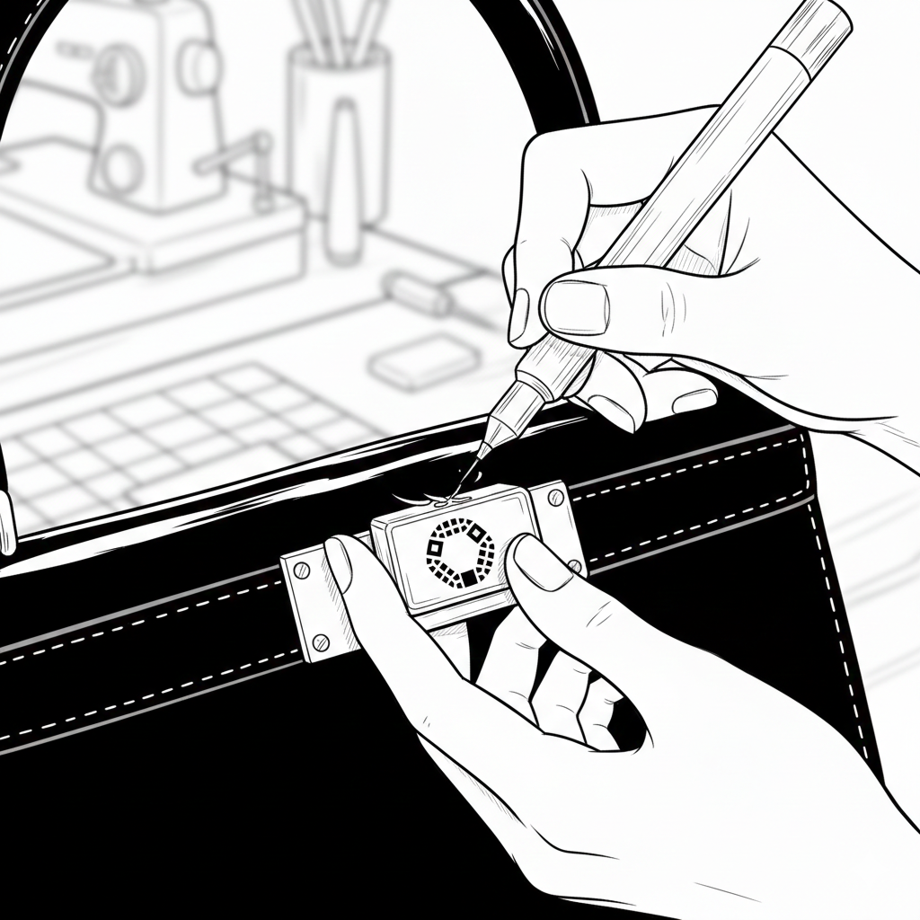 A permanent code embedded into products. Taking any offline object, online. Not stuck on. Not temporary. Part of the object itself. Each one unique. Each one a bridge between worlds. Laser-etched into metal. Molded into plastic. Woven into fabric. Embossed into leather. Sacred geometry made scannable. Carbon structure made code.